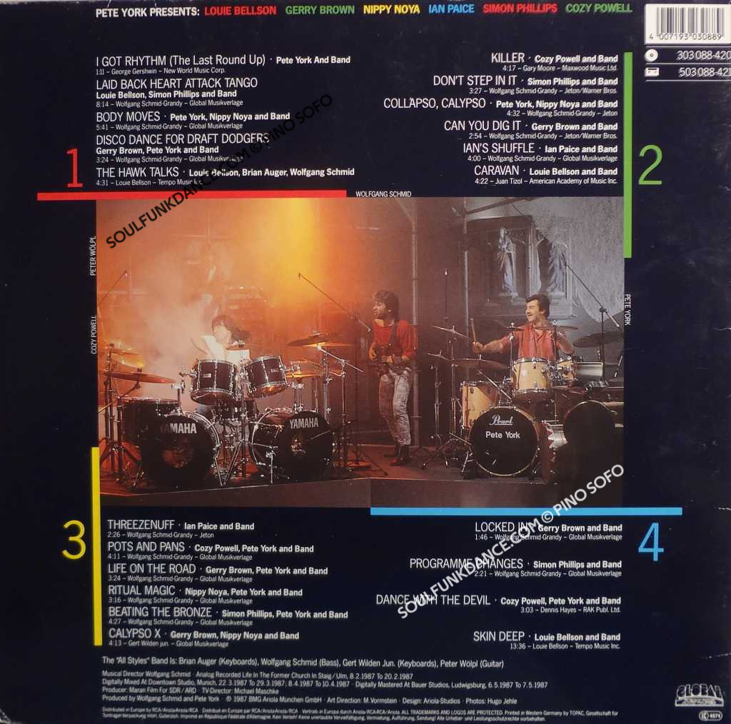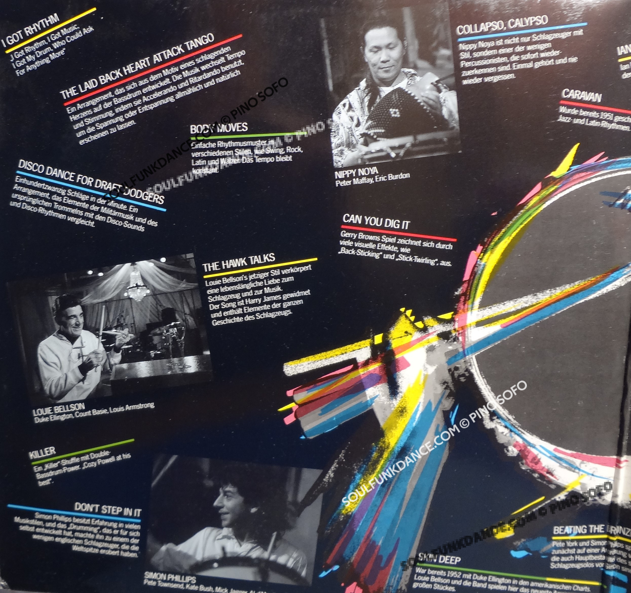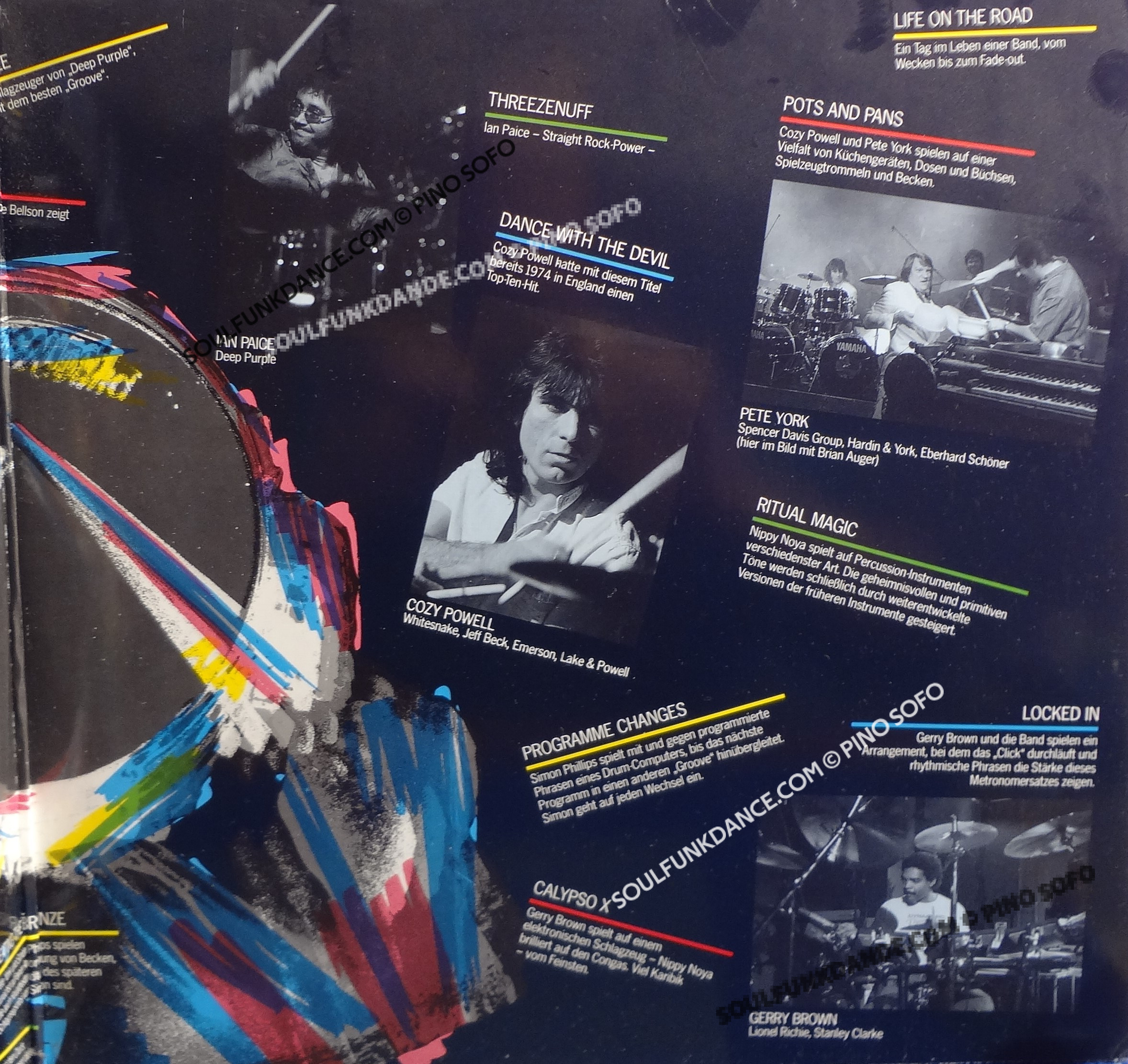 with; IAN PAICE, COZY POWELL, NIPPY NOYA, Simon Phillips, L. Bellson, & Gerry Brown